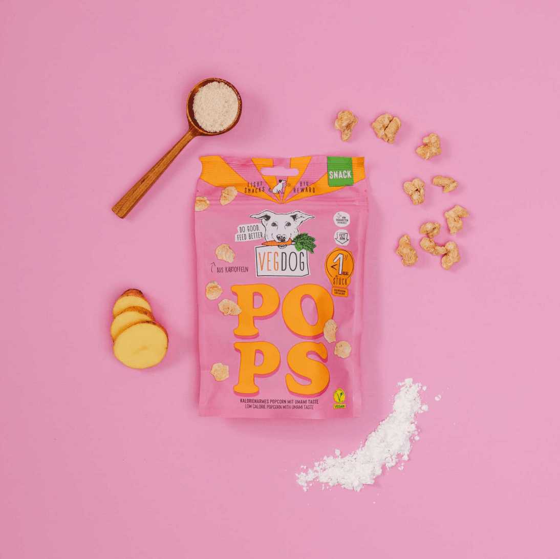 POPS está elaborado con solo tres ingredientes: patata, guisante y levadura de cerveza. Esta receta es suave para el estómago, fácil de digerir y bien tolerada incluso por perros con sensibilidad alimentaria. La patata aporta hidratos de carbono de fácil asimilación, mientras que la levadura de cerveza les da un intenso sabor umami que los hace irresistibles. Además, al estar libres de grasas y ser muy bajos en calorías, son perfectos para perros con sobrepeso o dietas controladas.