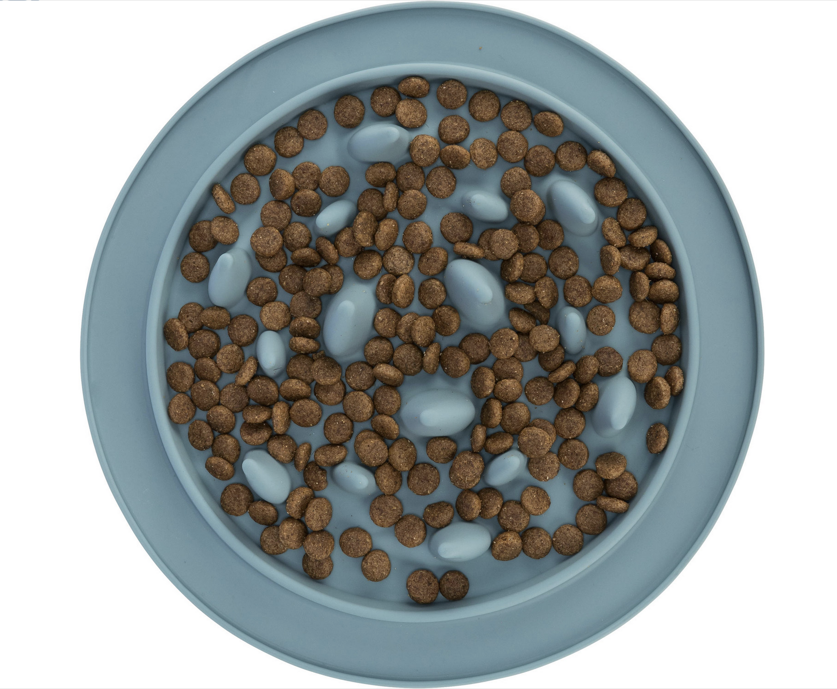 Comedero slow feeding de silicona para prevenir que engulla pienso o alimentos húmedos. Suave con las encías. Diámetro de 24cm.