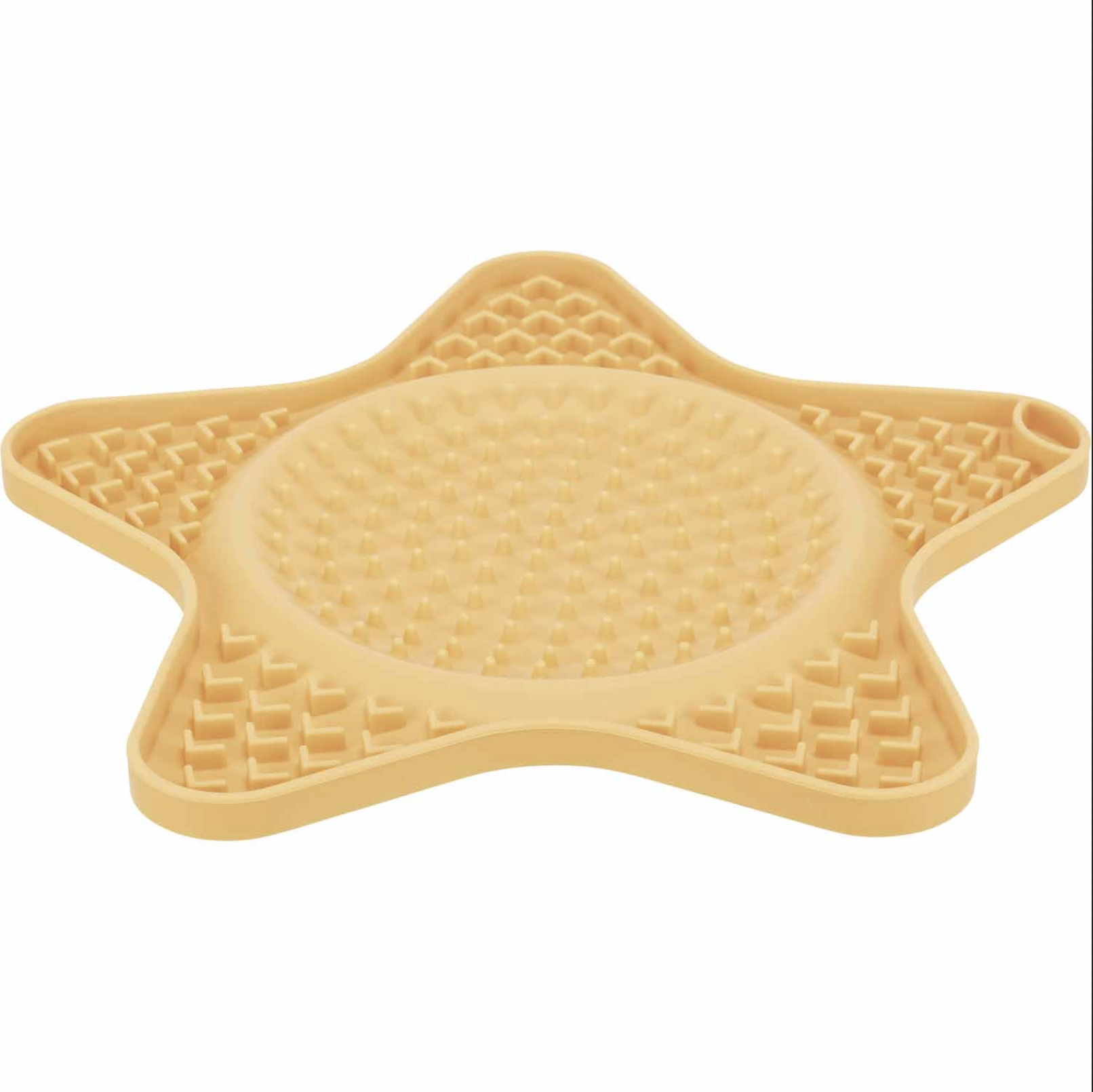 Mantel de silicona para lamer comida húmeda o líquida. Puede cubrirse de premios o latita, con sus bordes elevados previene que el líquido caiga. Diámetro de 23,50cm.