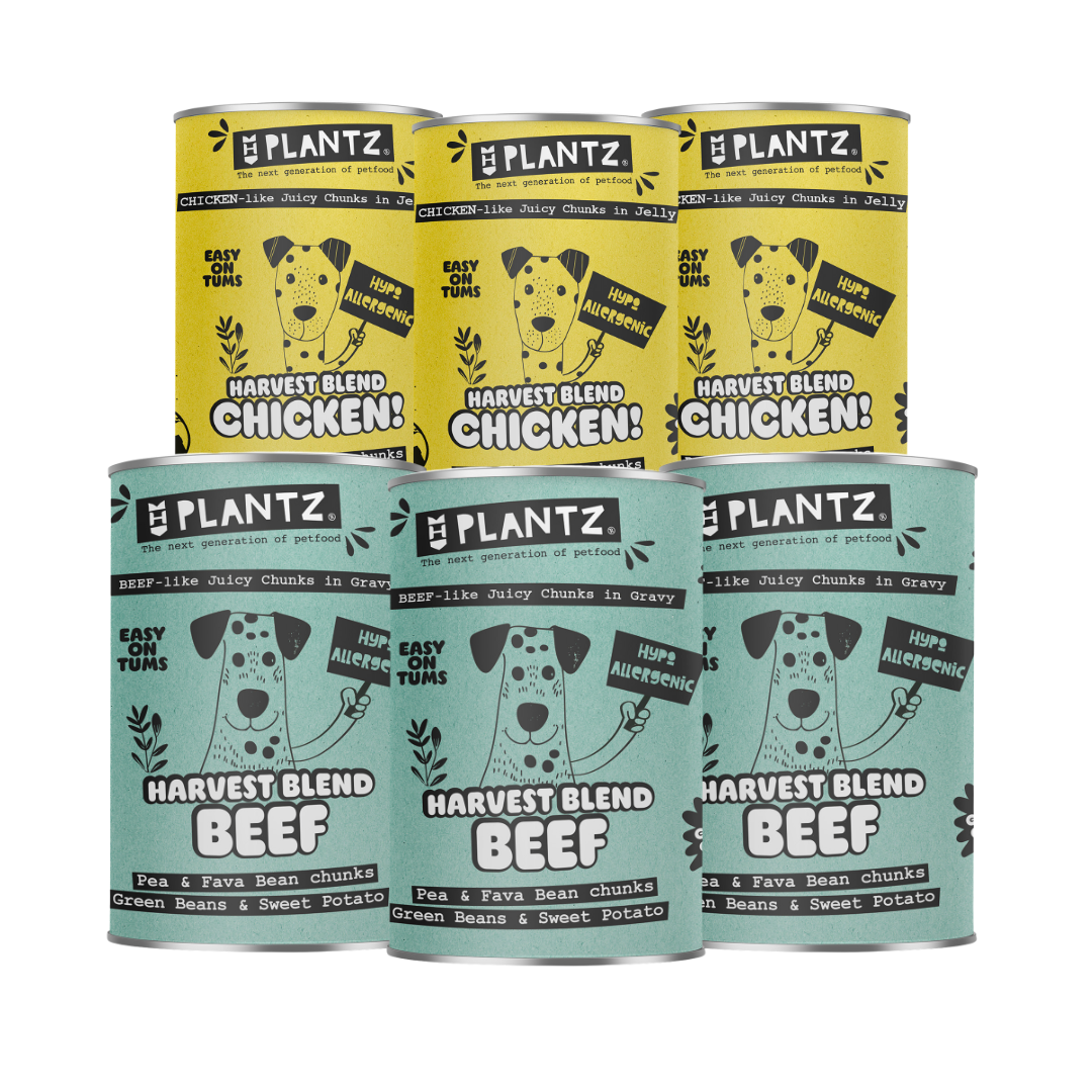 No-Pollo en gelatina y No-Ternera en salsa forman parte de la línea hipoalergénica Harvest Blend de PLANTZ. Se trata de recetas completas y veganas diseñadas para perros adultos a partir de 12 meses (y aptas para gatos!). Sus receta son hipoalergénicas y contienen proteínas de alta calidad, fácil digestión y una textura increíble y única. Al ser recetas completas contienen todos los nutrientes que necesita un perro para estar sano siendo una buena opción tanto como alimentación principal como para complementar su dieta habitual.