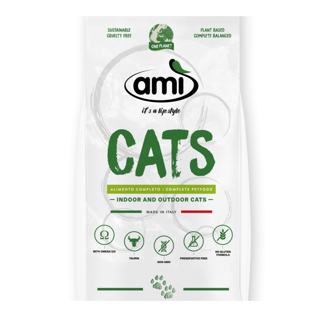 Contiene 1 saco AmiCat de 1,5kg, 1 lata de 400g de No-Pollo en gelatina Plantz, 1 Tetrapak de 380g de No-Caza Plantz, 1 tarro de 180g de comida húmeda con hierba gatera y 1 piruleta de matatabi.
